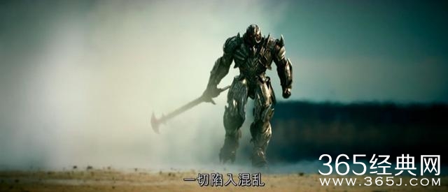 在这些展现“混乱”的镜头里,我们看到一个霸天虎的角色,它带着一把长得很像锤子的剑(= =),看着很像是之前报道中讲的已经复活的威震天。