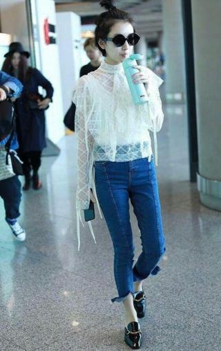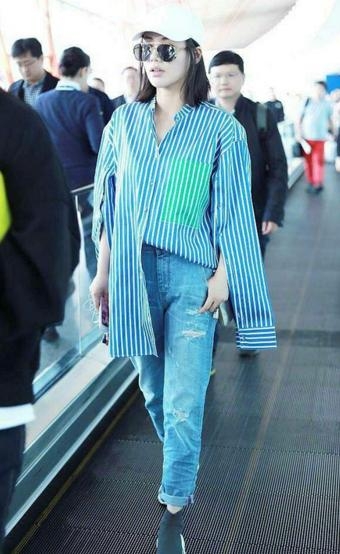 最近女星机场照啊,最受欢迎的可能就是杨子珊的了,大家都觉得她穿的很青春很大学生。