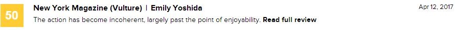 由F·加里·格雷执导,范·迪塞尔、道恩·强森、查里兹·塞隆、杰森·斯坦森和米歇尔·罗德里格兹等主演的[速度与激情8]外媒评论已出炉。