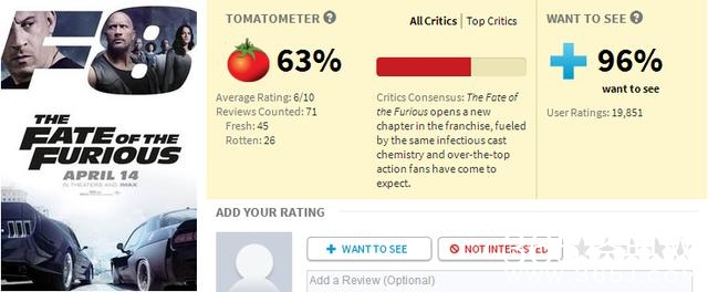 [速度与激情8]的外媒评价褒贬不一,但粉丝们对这样的爆米花电影要求并不会太高,只要自己看得爽了就成。