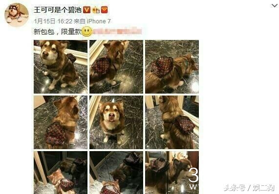 唐嫣顶不住网友的争论和谩骂,随即删了微博,你以为事情到此结束,那就错了。又该我们娱乐圈纪检委书记登场了,王思聪随后让自己的狗狗王可可背上了一款限量款宝宝,并在微博晒图,并发文“狗背铲包”。