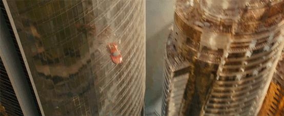 最夸张的莫过于《速度与激情7》的这一段戏,多米尼克与布赖恩为了逃避杀手的追捕,直接加足马力,竟然能从一栋大楼飞越到另一栋大楼,从空中飞行约莫500公尺,完全超越人类极限。