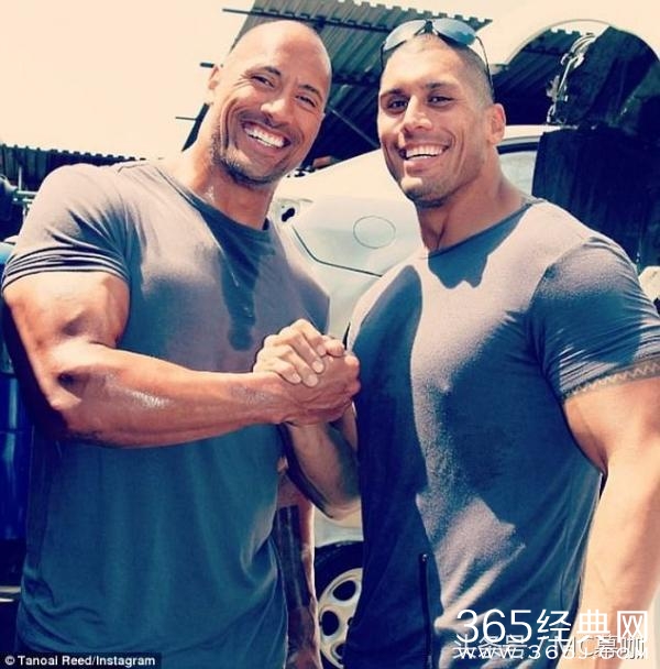 巨石强森在《速度与激情》的特技演员替身,是与他体型非常相近的 Tanoai Reed,两人都拥有同样壮硕的肌肉手臂,同时 Tanoai Reed 也是巨石强森的表弟,果然有家族基因。
