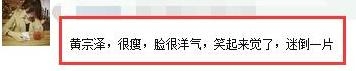 黄宗泽见过他的网友评价是:很瘦,脸很洋气,笑起来绝了,迷倒一片!