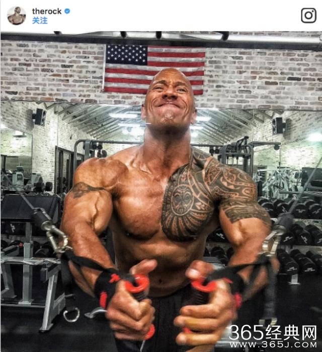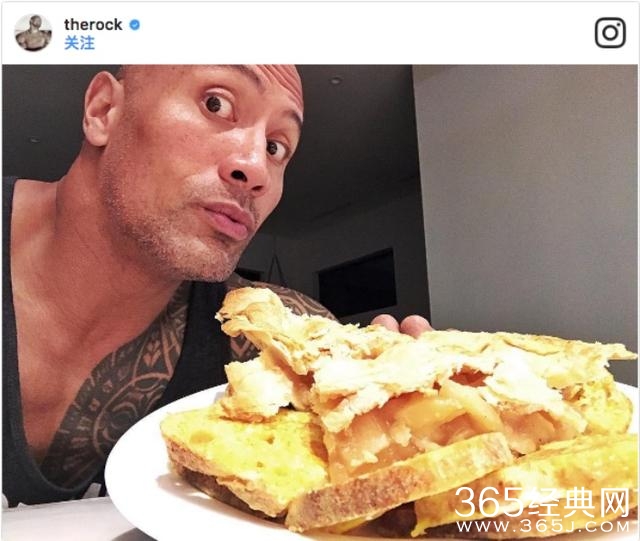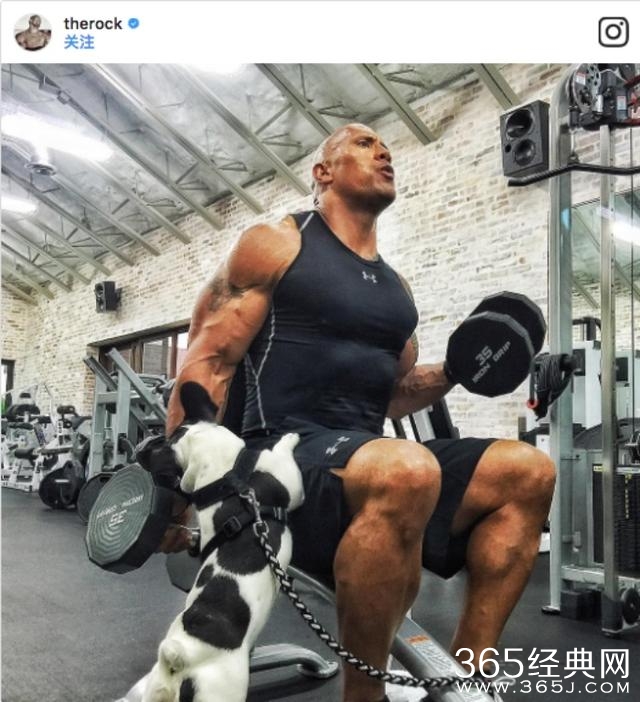 强森经常在Instagram上晒自己的健身照和健身餐,偶尔也会发爱狗的照片。
