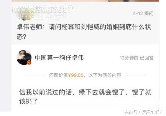 卓伟还再一次描述了刘恺威和杨幂的婚姻状况:“绿下去就馊了,馊了就该扔了”,这其中的喻意也是深长。虽然这几年他们离婚传言不断,婚姻状态扑朔迷离,但杨幂从来不会回应有关她婚姻的任何绯闻的。