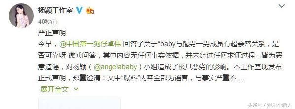 此消息一出,立即引来baby和陈赫两方双双发表声明进行了澄清,都表示“其中内容无任何事实依据,并未经过任何求证过程,皆为恶间造谣。”如果这一消息属实的话,也就能很好的解释了为啥跑男团节目组会找陈赫这种身体条件不好的人来上节目了。