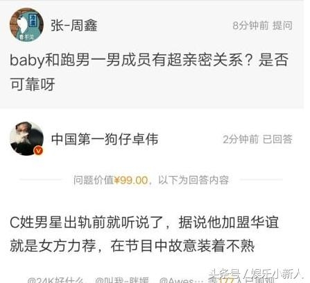 有网友问卓伟baby和跑男团一男成员有超亲密关系,是不是真的?卓伟隐晦的回答说是baby当初推荐陈赫加盟华谊的,两人在节目中故意装着不熟,实际关系菲浅。