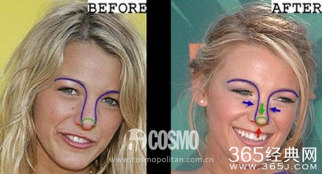 美观的鼻子要满足哪些要求呢?首先是比例,鼻子的位置、宽度、高度,都影响着审美视角。欧美虽然天生的高鼻梁,但往往因为鼻子太宽缺乏美感。好奇宝宝们,快来看看这些明星鼻部的前后对比吧!不管是微调还是通过妆容上改变了鼻形,我们都能从图中看到明显的变化。