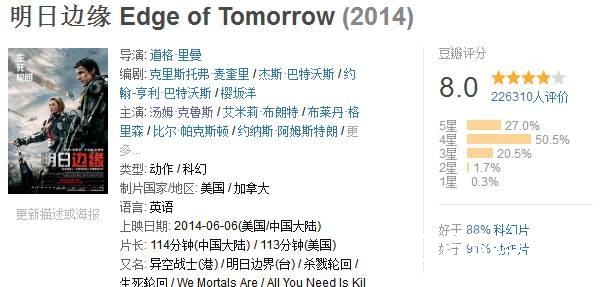 比如2014年阿汤哥主演的《明日边缘》就口碑票房双丰收,原作中男女主角隐晦复杂的感情简单明朗化,本来是开放式的灰暗结局改成了英雄战胜邪恶的大团圆结局,削弱了日式孤单绝望的宿命感,非常好莱坞却又很得体。