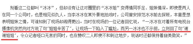 真是厉害了,我的冰冰!不光如此,还有小道消息称:在那个还不流行炒作撕逼的年代,公司拼命想炒两位闺蜜情深,于是特意找了记者来拍范冰冰探班李冰冰。结果没想到,到了现场范冰冰就来了一句:“姐姐辛苦了。” 李冰冰则回击:“谢谢姐姐。” 哈哈哈,哪怕是时隔多年的此时此刻,还是能感觉到现场记者的尴尬啊~