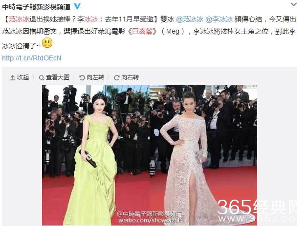后来戛纳红毯争奇斗艳的时候干脆改成明嘲,直接说范冰冰穿得太夸张,自己这样简简单单才好。
