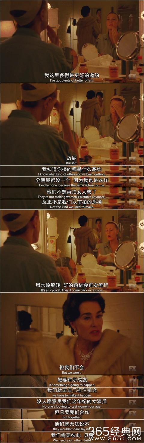 但等到琼说出她要找的配角演员的名字时,导演松口了。因为琼要找的正是——贝蒂·戴维斯。我的个神啊,这两个撕逼了大半辈子的人突然要合体了?你不想看吗?你不想看吗?我都想看!