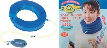 小编真不理解为什么会有人想让脖子变长,是想来世投胎做长颈鹿吗?无论如何,奇葩的日本人民的确是创造了这种东西,据说,这脖子拉伸器在充气之后可以充分地拉伸脖子,从而让脖子越来越长哦......神经病啊??!