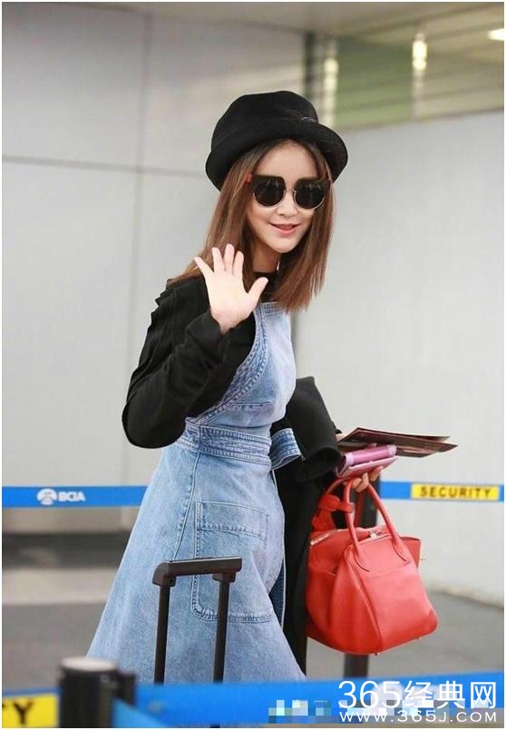 近日张歆艺现身机场,一条牛仔长裙内搭泡泡袖上衣,显得壮实不少,腿上配上蓝色花纹丝袜,也许她是走在时尚的前沿吧。