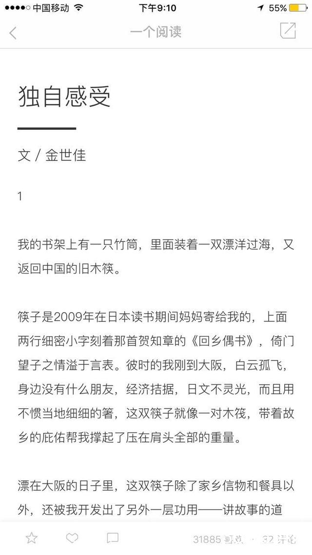 一篇被ONE一个发表,对,就是韩寒的那个APP。