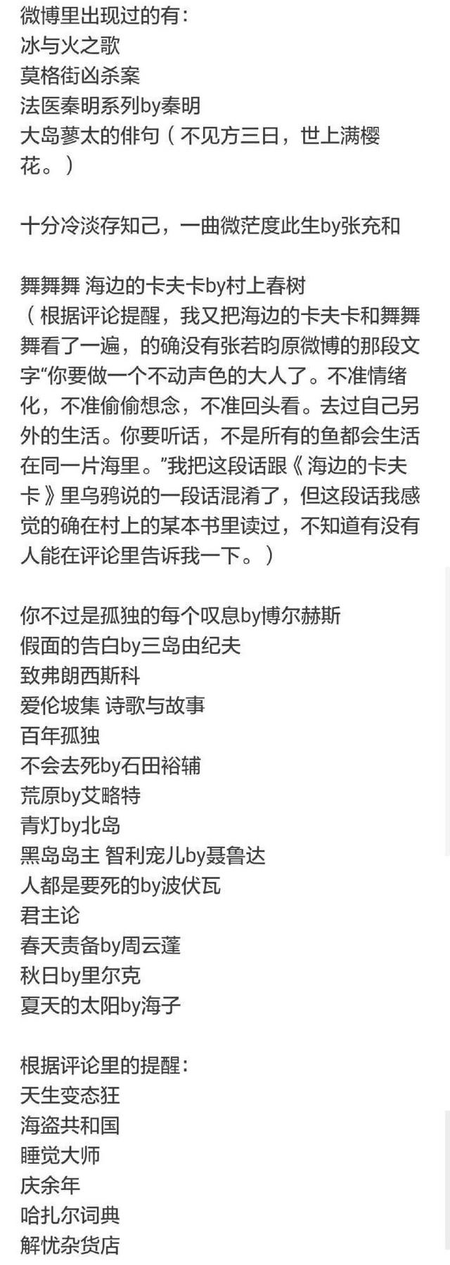 说起书单,张若昀可是一点也不含糊,知乎上还有张若昀的书单分析呢,妹妹截了一点,清一水的文艺书。