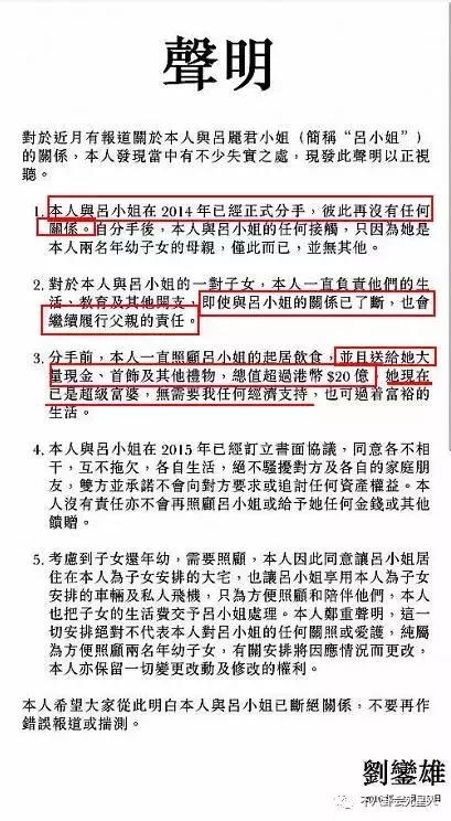 虽然与吕丽君分了手,但对于她的子女,还是有份分到财产。