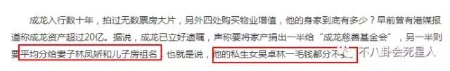 成龙曾说过,家产全留给林凤娇和房祖名。