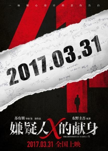 由苏有朋导演,王凯主演的悬疑电影《嫌疑人X的献身》