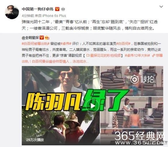 4月12日,卓伟公布了他12年的大料——白百合出轨“先是一指禅,再是摸臀杀”,陈羽凡多次出来极力辟谣先是闲的蛋疼,再要弄死人家。但白百合任何消息都没有回应