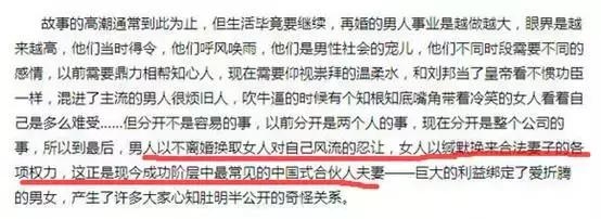 这种半强迫半牺牲的开放式婚姻,说到底还是男人有钱就学坏在作祟啊,控制不住自己的生物本能啊,呵呵。