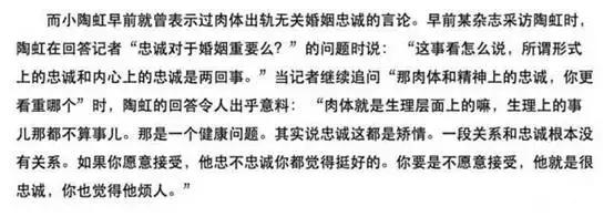 而陶虹也在公开场合表示“关系和忠诚没有关系”。