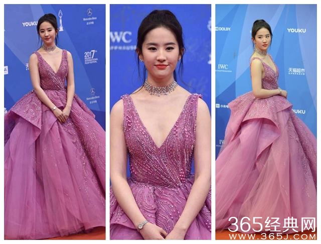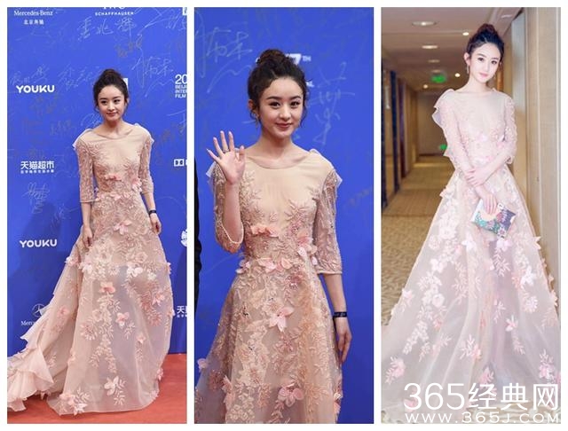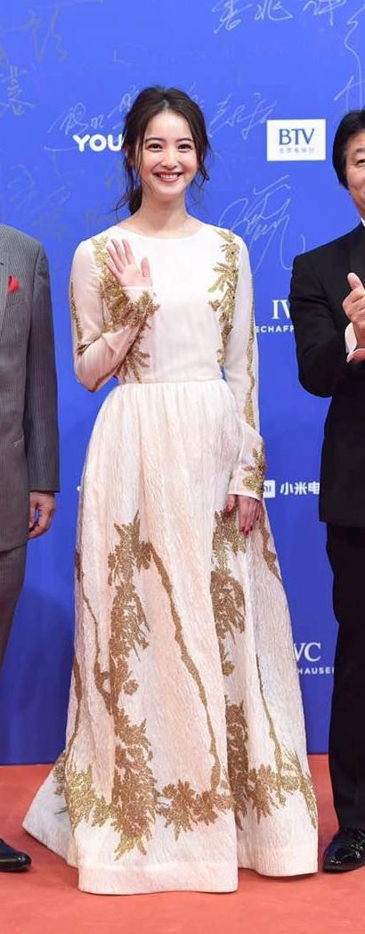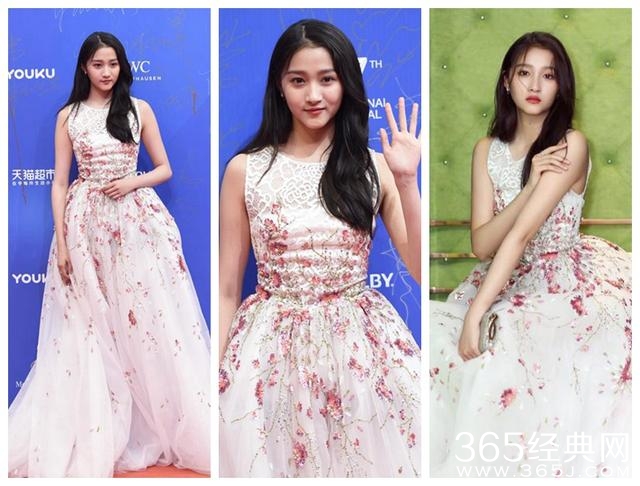 国民闺女关晓彤,有没有看着自己妹妹一点点长大的感觉?这条花裙子很适合她,有点俏皮又不失妩媚,她的可塑性向来比较强,很多类型的礼服她都能hold住。