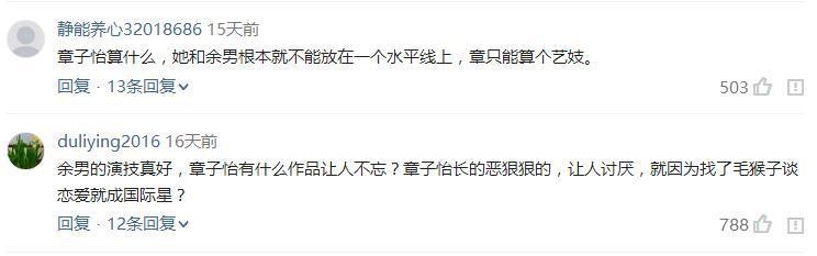这件事虽然余男不计较,但是网友却不这么认为,纷纷表示“这才是巨星,把章子怡秒成了渣”、“章子怡算什么,她和余男根本就不能放在一个水平线上”、“余男的演技真好,章子怡有什么作品让人不忘?章”等等。。或许就是这种走自己的路,不在乎别人的看法。才会成就一个如此优秀的演员,我们也期待余男下一次精彩的作品出现。