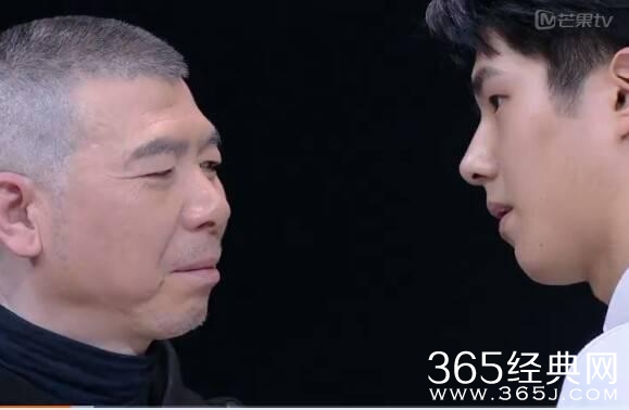 微抬下巴,眼神里透出不屑和轻视,面对冯小刚这样的老炮儿也没有怯场。