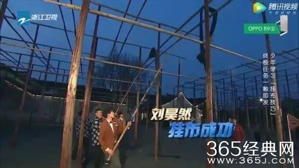 挑战挂染布的任务时,刘昊然迅速掌握了诀窍,轻轻松松一次成功。