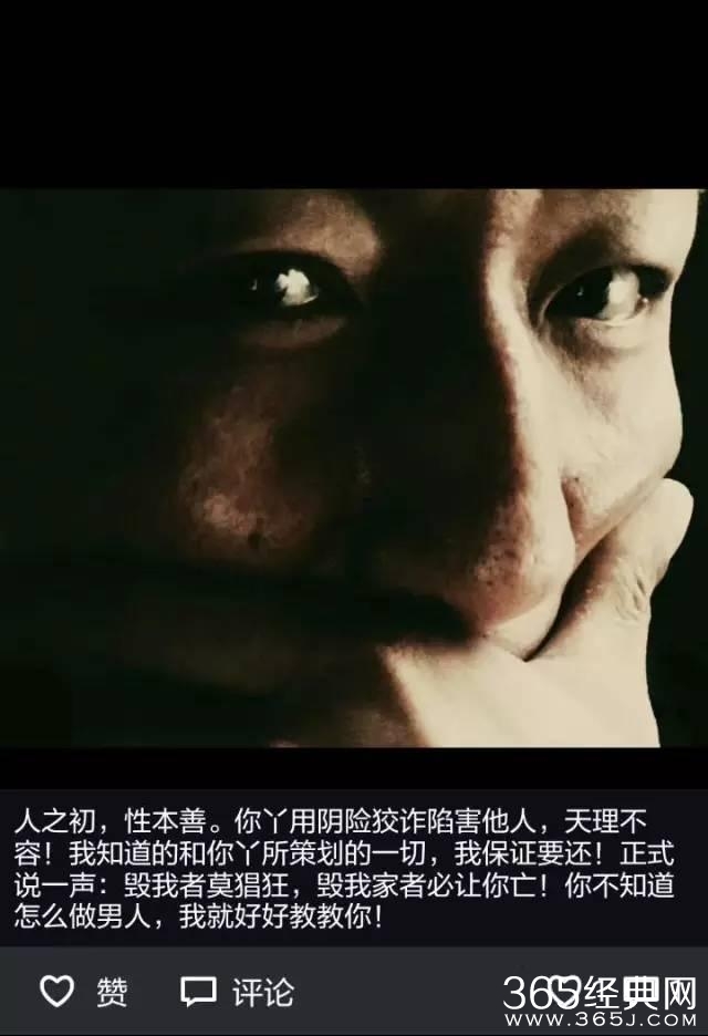 意味深长的是,就在前天凌晨,陈羽凡在朋友圈还言辞激烈的回应白百何偷拍事件:“人之初,性本善。你丫用阴险狡诈陷害他人,天理不容!我知道的和你丫所策划的一切,我保证要还!正式说一声:毁我者莫猖狂,毁我家者必让你亡!你不知道怎么做男人,我就好好教教你!”