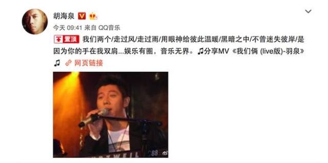 胡海泉当天早上回应表示:“娱乐有圈,音乐无界。”
