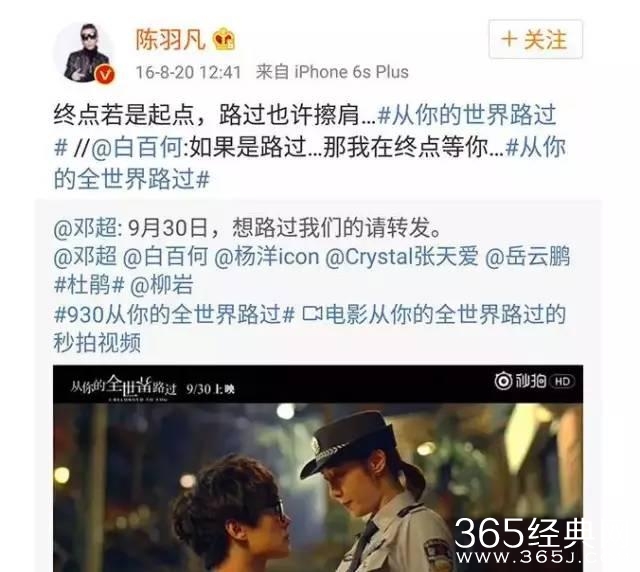 陈羽凡秒拍视频的文字内容如下:“大家好,我是陈羽凡。