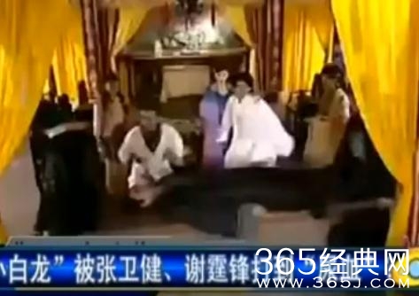 当时王伯昭演的是江别鹤,一场戏中演江别鹤尸体,张卫健跟谢霆锋两人鞭尸,假戏真做,一顿狠揍,打的王伯昭住院。
