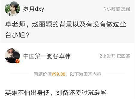 不过今日要说的仍是赵丽颖,不知道从什么时候开端,赵丽颖被疯传曾经在出道之前坐过台,咱们知道坐过台是什么概念么...便是那种不行描述的作业。近期有网友提问卓伟赵丽颖是不是坐过台,这个网友真是挺无脑的,卓伟答复的内容很内在:“英豪不怕身世低,刘备还买过草鞋呢”。