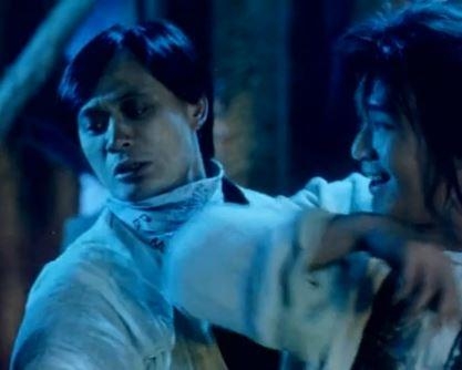 这时候,至尊宝抓着菩提老祖的手对白晶晶说:“你以为我真的怕你的三味白骨火吗,有种再烧一次试试看”。
