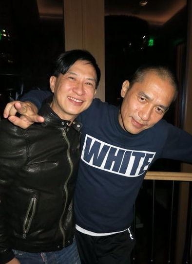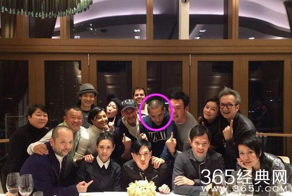 合影当中,梁朝伟的光头确实抢眼: