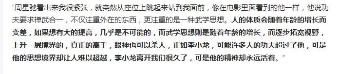 他对于偶像李小龙是这样描述的: