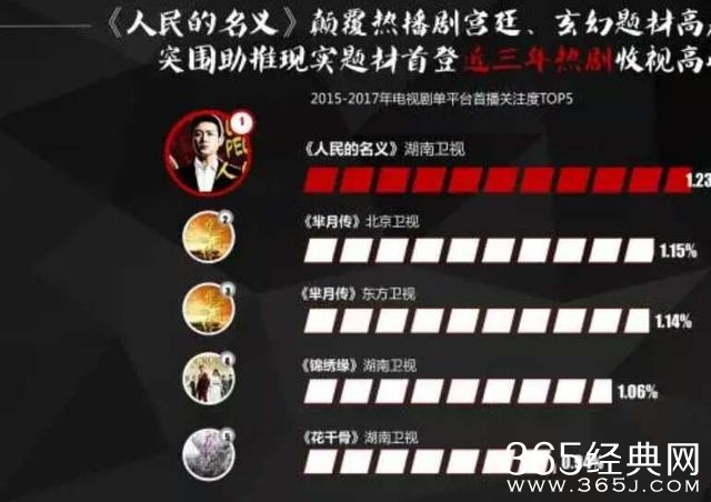 反腐剧《人民的名义》播出过半在全社会引起巨大的反响,已经成为现象级大剧,并且热度还在持续攀升。根据某数据显示,随着剧情的展开和深入,《人民的名义》关注度呈翻番式成长,开播10集后关注度突破1%,20集后市占率突破25%,目前《人民的名义》以1.23%的关注度,成为近三年来电视剧电视平台首播的“冠军”,创下近三年电视剧最高市占率。同时,数据显示,《人民的名义》的视频流量占到全网电视剧视频流量的近20%,市占率第一;在社交网站上相关阅读量爆发性增长,微博评论65%以上呈现为积极评价。