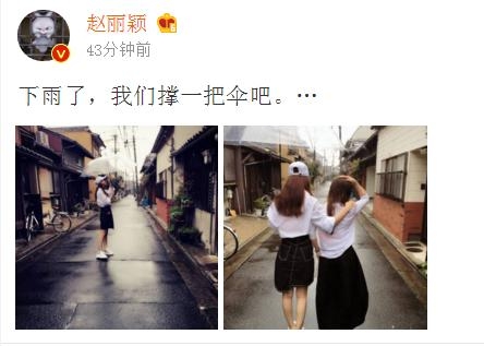 没看照片的时候,还想说赵丽颖和这位不知名的朋友果然是姐妹情深呢,下雨天还一起撑伞!