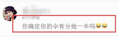 网友也控制不住洪荒之力,纷纷调侃:你确定你的伞有分她一半吗