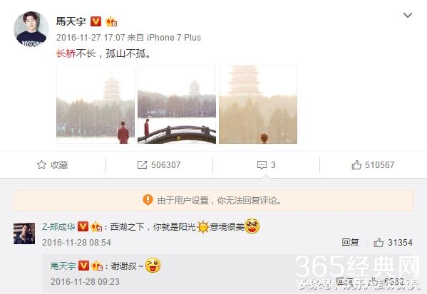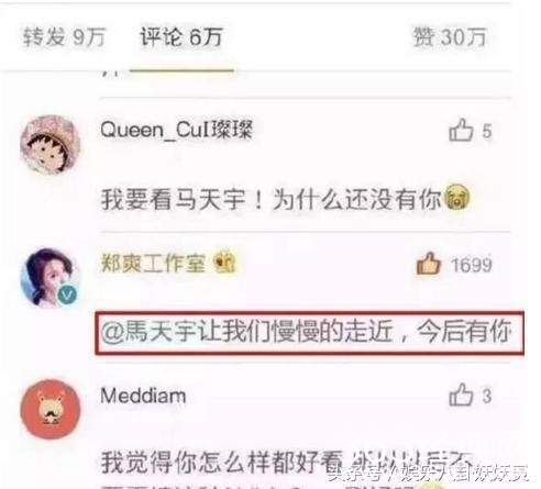 更让人寻味的是,在马天宇发布的一条微博下面,竟然有郑爽爸爸一条评论哦,哈~这是什么节奏呢?甚至还有人曝出郑爽爸爸已经认定马天宇是他的准女婿。