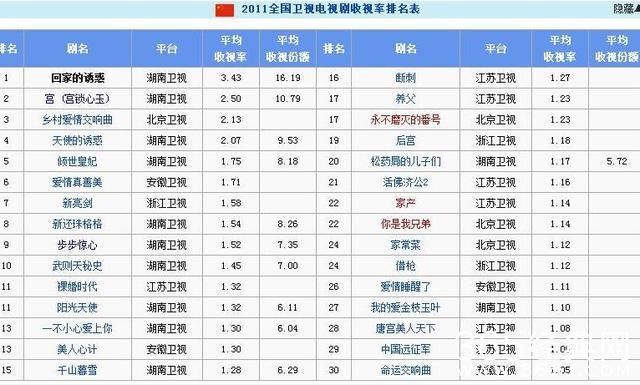 湖南电视台的收视率一向不错,所以这些收视率比较高的均出自湖南卫视。