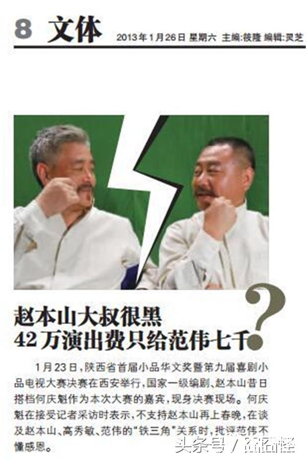 国内某媒体更是爆出大料:赵本山42W演出费只分给范伟7000,引起了范伟的严重不满。老搭档高秀敏曾劝赵本山多给范伟点钱,赵本山直接翻脸。