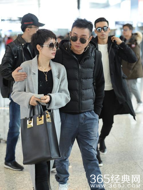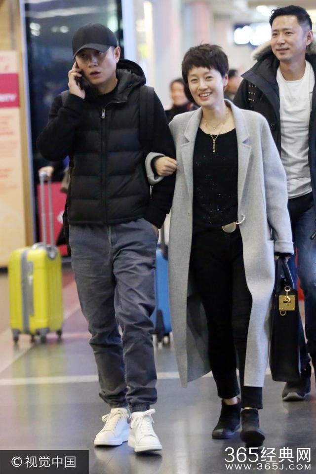 现身机场时,文章用手搂着老婆的肩膀,仿佛在认真倾听马伊琍讲话~