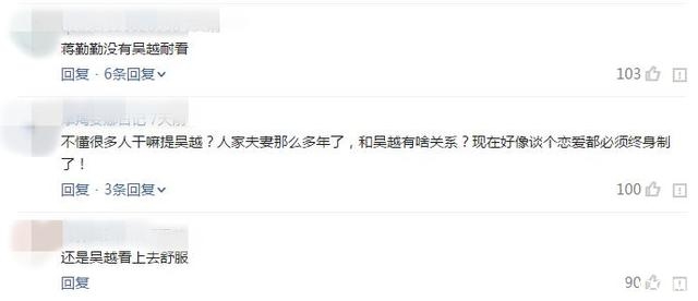 不过,对于吴越,也有网友表示:“人家夫妻那么多年了,和吴越有关系,好像现在探戈恋爱都必须终身制了。”