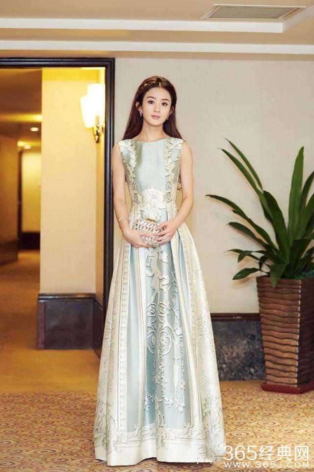 当天出席的赵丽颖出场顺序靠后,估计也有压轴出场的意味,身穿复古范十足的印花礼服,薄荷浅绿,文艺气质,配以中分的发型显得圆脸格外萌萌哒。