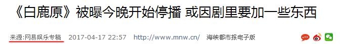 虽说《白鹿原》的官方平台,至今还没有给出一个停播的正式原因,但网络上的各大媒体与网友却已经开始纷纷给出了自己的猜测与判断: