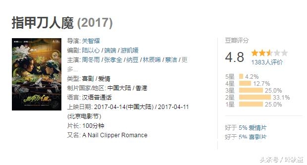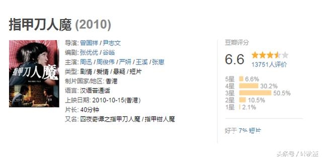 电影本身的设计其实很有趣,但是通过荧幕的表达反而削弱了想象空间,效果自然不如预期。好的演员也要好的题材,好的表现形式,好的呈现模式。所以,《指甲刀人魔》的电影,不论是周迅的短片,还是周冬雨的电影,都少了一丝味道,多了一些乏味。